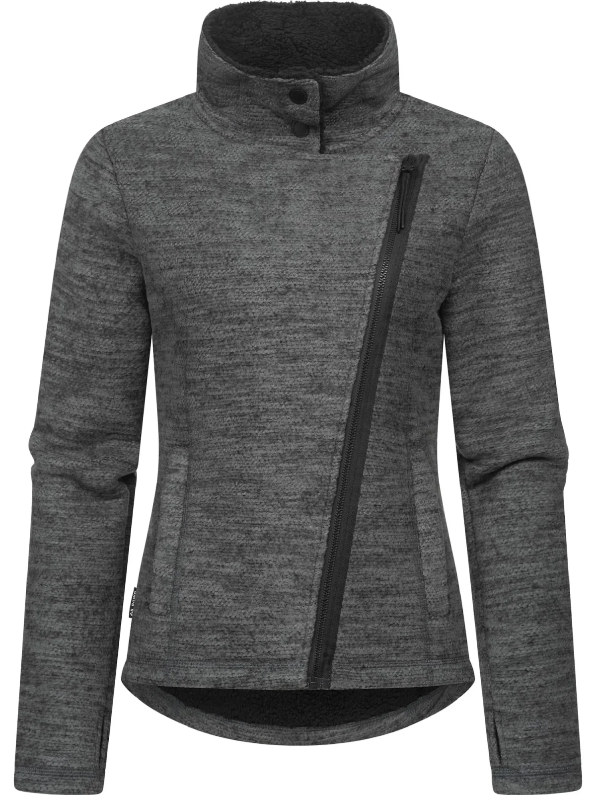 Design: Zakken aan de zijkant, Schuine rits, Duimopening; Type sluiting: Ritssluiting; Type jas: Bikerjack; Voering: Licht gevoerd; Materiaal: Knitwear; Halstype: Opstaande kraag; Motief: Mélange; Extra's: Fleece binnenvoering; Pasvorm: Slanke pasvorm; Armlengte: Lange mouw; Lengte: Normale lengte