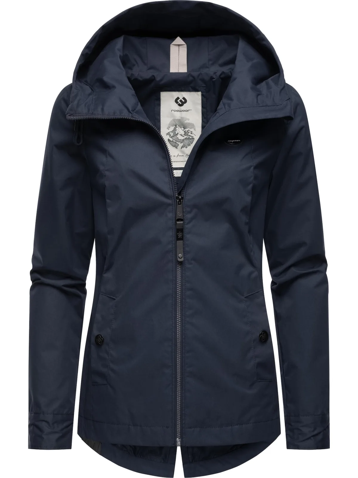 Design: Verlengd rugpand, Zakken aan de zijkant, Verstelbare capuchon; Type sluiting: Ritssluiting; Type jas: Regenjas; Voering: Licht gevoerd; Motief: Effen; Extra's: Label patch/label flag, Op staal naden; Pasvorm: Normale pasvorm