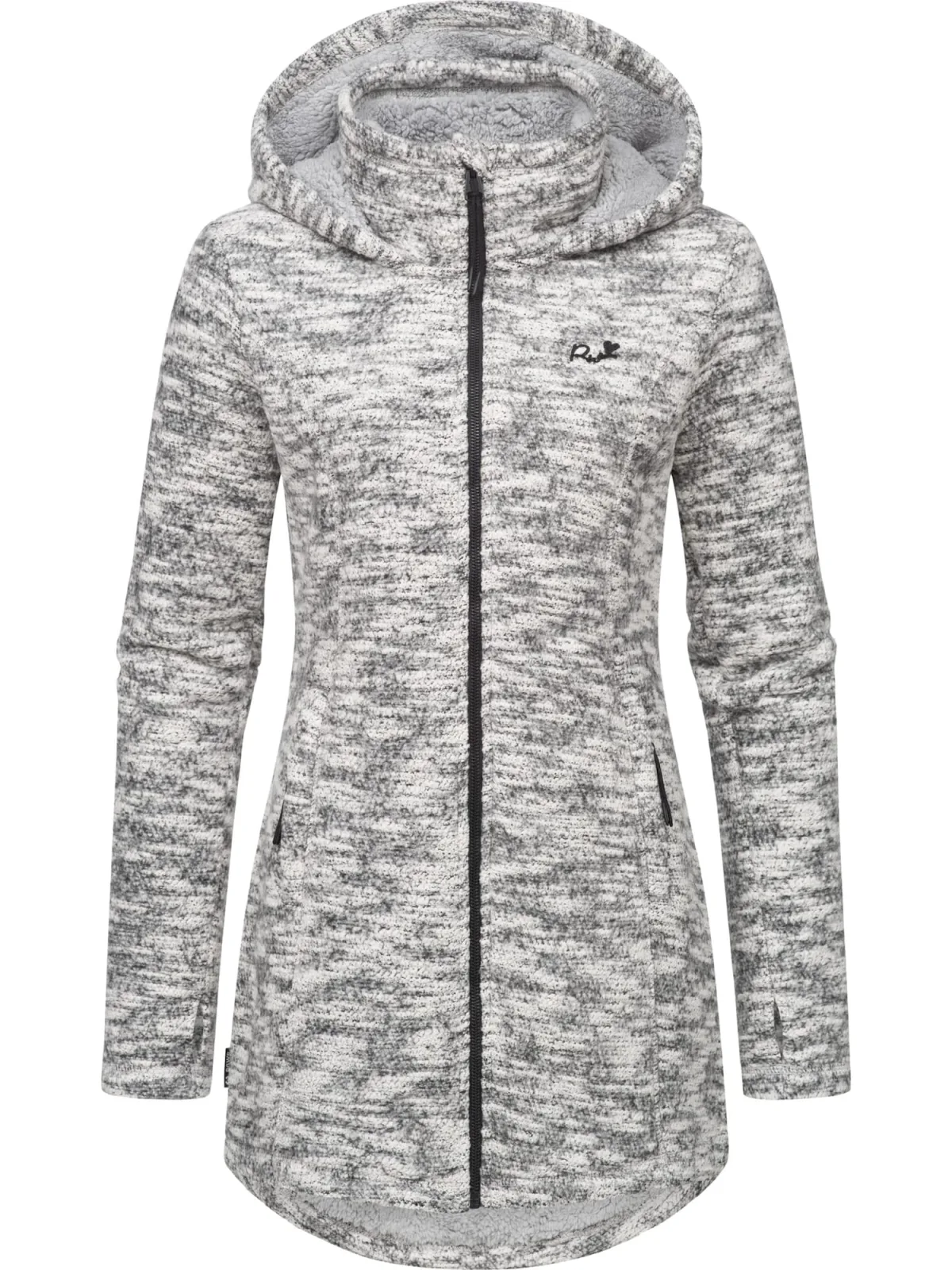 Design: Verlengd rugpand, Ritszakken aan de zijkant; Type sluiting: Ritssluiting; Voering: Licht gevoerd; Materiaal: Knitwear; Halstype: Capuchon; Motief: Mélange; Extra's: Label borduurwerk; Pasvorm: Slanke pasvorm; Armlengte: Lange mouw; Lengte: Lange pasvorm