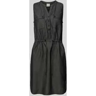 Mini-jurk van ragwear;Katoenmix met viscose;Licht uitlopend model;Model 'Roissin';Denimlook;V-hals;Knoopsluiting;Borstzakken;Tunnelkoord;Ruglengte bij maat S: 84 cm;Borstomvang bij maat S: 45 cm