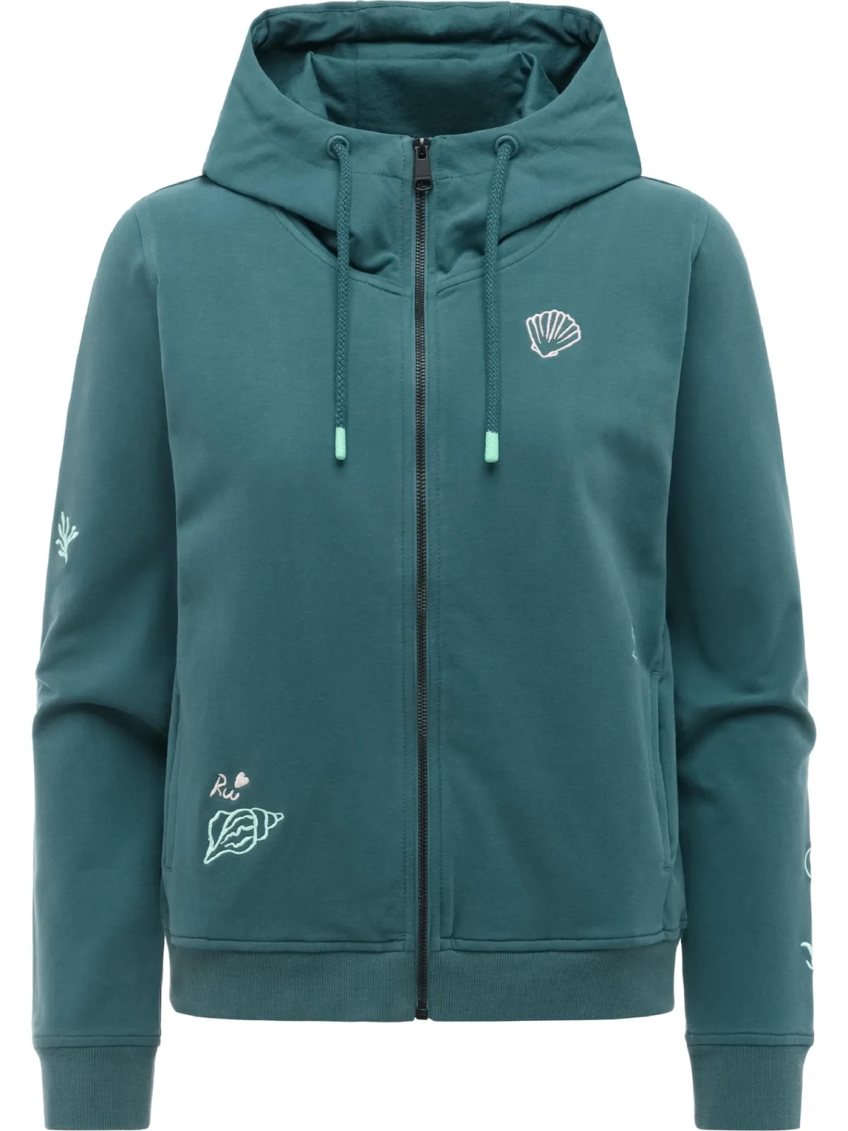 Design: Geribd ceintuurtje, Zakken aan de zijkant; Type sluiting: Ritssluiting; Materiaal: Sweatstof; Halstype: Capuchon; Details: Borduursels; Extra's: Voelt zacht aan; Pasvorm: Normale pasvorm; Armlengte: Lange mouw; Lengte: Normale lengte