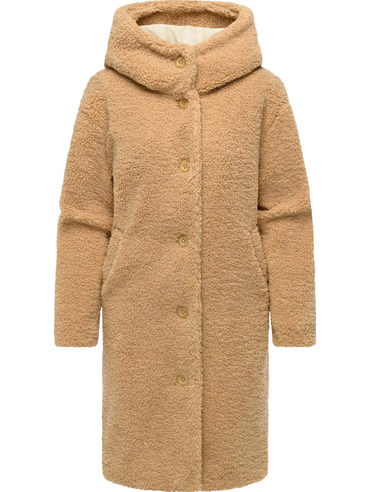 Design: Met capuchon, Zakken aan de zijkant; Type sluiting: Knoopsluiting; Voering: Licht gevoerd; Materiaal: Nepbont; Motief: Effen; Extra's: Met textuur, Voelt zacht aan; Pasvorm: Normale pasvorm; Lengte: Lange pasvorm