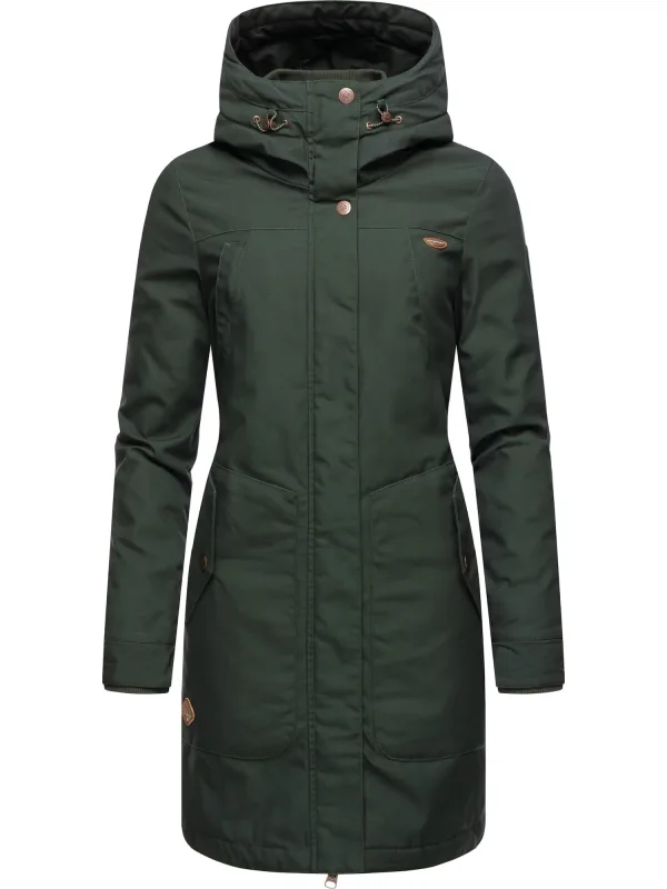 Ragwear Wintermantel ‘Jannisa’ bruin / donkergroen / wit