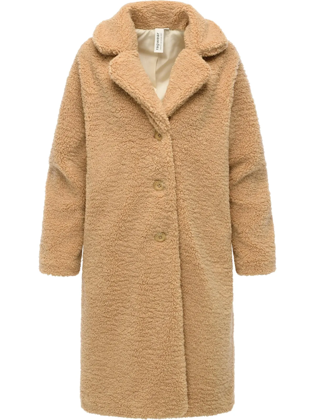Type mantel: Klassieke mantel; Design: Revers kraag; Type sluiting: Knoopsluiting; Voering: Warm gevoerd; Materiaal: Teddy; Motief: Effen; Extra's: Met textuur; Pasvorm: Wijde pasvorm; Lengte: Normale lengte