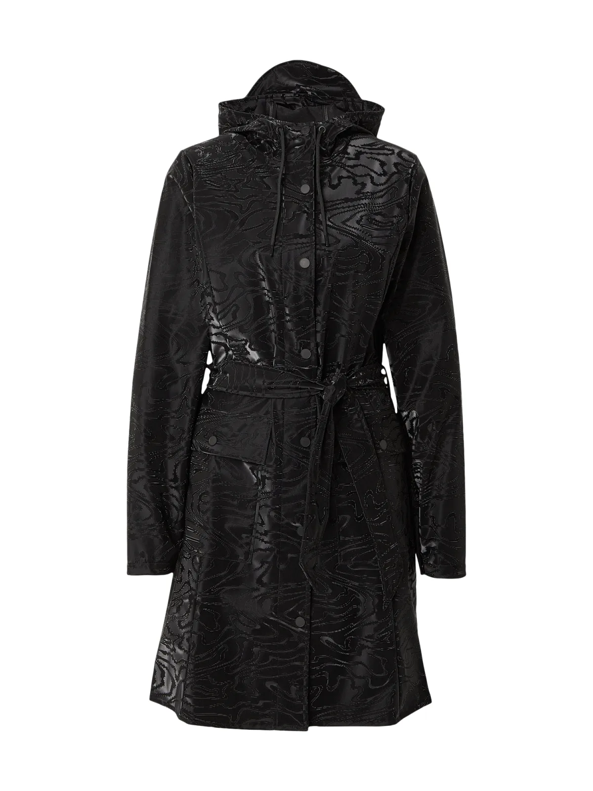 Type mantel: Regenjas; Design: Rechte zoom, Capuchon met trekkoord, Met riem, Opzet-/flapzak; Type sluiting: Ritssluiting; Voering: Niet gevoerd; Extra's: All-over patroon, Op staal naden, Riemlussen; Pasvorm: Normale pasvorm; Lengte: Normale lengte