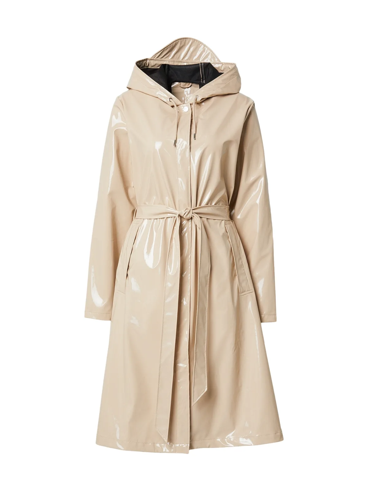 Type mantel: Regenjas; Design: Gevoerde zoom/rand, A-lijn, Capuchon met trekkoord, Met band/snoer; Type sluiting: Drukknoop; Voering: Niet gevoerd; Materiaal: Gerecycled materiaal; Halstype: Capuchon; Motief: Effen; Extra's: Glanzend, Waterafstotend, Milieuvriendelijk geproduceerd; Pasvorm: Normale pasvorm; Lengte: Normale lengte