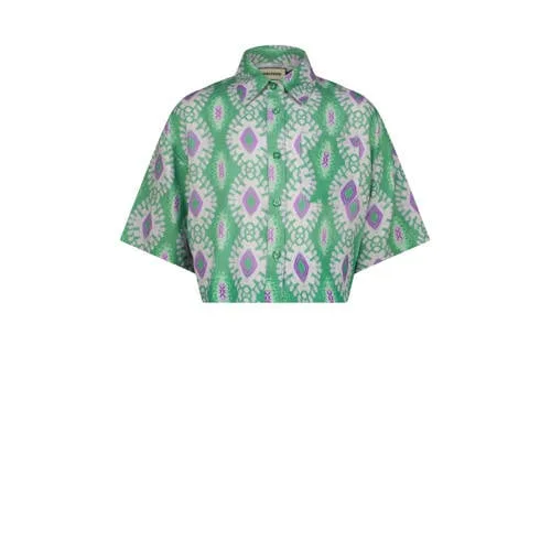deze Raizzed Helda blouse heeft korte rechte mouwen en een klassieke kraag de blouse is gemaakt van 100% viscose de groene, paarse en ecru kleuren geven je een frisse uitstraling bij je dagelijkse outfits