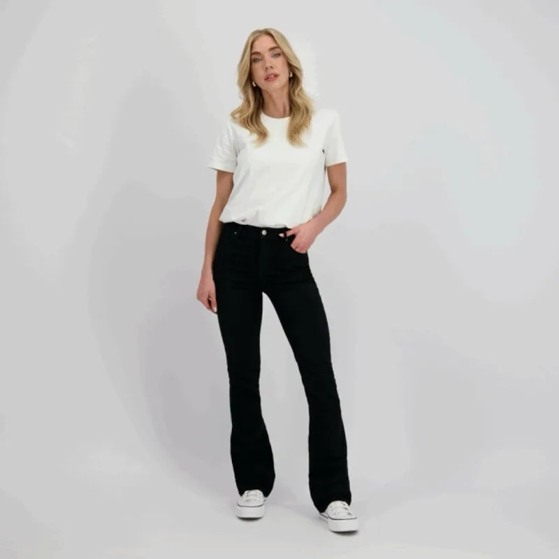 Upgrade je denim collectie met deze prachtige zwarte jeans van Raizzed dames. Deze bootcut flare fit jeans heeft een tijdloze look en is perfect voor elke vrouw die houdt van stijl en comfort. De broek is gemaakt van hoogwaardige materialen, waaronder 72% katoen, 26% polyester en 2% elastane. Dit zorgt voor een perfecte pasvorm en een ultiem draagcomfort. De zwarte denim kleur geeft deze jeans een edgy en moderne uitstraling, waardoor je er gegarandeerd stijlvol uitziet. Of je nu naar een casual dag op kantoor gaat of een avondje uit met vrienden, deze jeans kan altijd. Combineer hem met een leuke blouse en hakken voor een chique look of draag hem met een simpel t-shirt en sneakers voor een meer casual outfit. Wacht niet langer en voeg deze must-have jeans toe aan je garderobe!