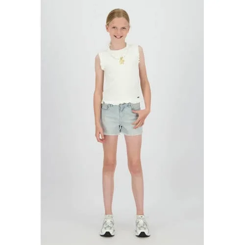 Voor een frisse, veelzijdige zomerse look is deze Raizzed Tess mouwloze top voor meisjes een praktische basic met een speels accent. De top is effen offwhite, waardoor hij makkelijk te combineren is met favoriete jeans, shorts of een rok. De subtiele textuur en ruches geven net wat extra detail, zonder dat de top te druk oogt. Ideaal voor schooldagen, een middag in de stad of een familiebezoek.Comfort en details voor elke dag Mouwloze meisjes top in offwhite, passend bij veel outfits Gemaakt van 50% modal, 47% katoen en 3% elastaan voor een zachte, soepele stof met lichte stretch Ronde hals die comfortabel aansluit zonder te strak te zitten Ruches en subtiele textuur zorgen voor een speelse en moderne uitstraling Geen sluiting, de top gaat eenvoudig over het hoofd aan en uit Geschikt voor schoolkinderen en tieners, uit de urban collectie van Raizzed Wasbaar op 30 graden, lauw strijkbaar en geschikt voor een regulier droogprogrammaEenvoudig te stylen voor elke gelegenheidDeze top past goed bij een korte broek en sneakers voor een casual dag, of met een denim rok en sandaaltjes voor een meer verzorgde outfit. Door de neutrale kleur kan je kind de top vaak dragen, in elk seizoen met een vest of jasje eroverheen.Raizzed: kinderkleding met oog voor comfortRaizzed staat bekend om eigentijdse kindermode met een urban gevoel. De ontwerpen zijn gemaakt voor dagelijks draagplezier, met aandacht voor pasvorm en zachte materialen, zodat kinderen zich vrij kunnen bewegen en zichzelf kunnen zijn.Een comfortabele basic met speelse details waar je kind gemakkelijk naar grijpt.