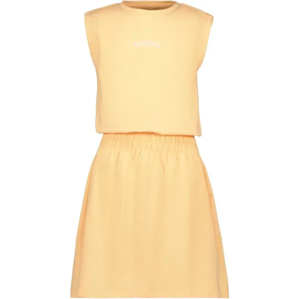 Deze trendy en stijlvolle meisjesjurk van het populaire merk Raizzed is een absolute must-have voor de zomerse dagen! De jurk heeft een prachtige zalmpeach kleur die perfect past bij het zomerseizoen. Het model is kort en valt mooi om het lichaam van je kleine meid heen.en#10;en#10;De korte mouwen en ronde hals geven de jurk een speels en meisjesachtig uiterlijk. Daarnaast zorgt de tekstprint op de voorzijde voor een extra trendy touch. De tekstopdruk is subtiel en maakt de jurk net wat specialer.en#10;en#10;De jurk is gemaakt van hoogwaardig materiaal, namelijk 95% katoen en 5% elasthan. Dit zorgt voor een comfortabele pasvorm en maakt de jurk ook nog eens makkelijk te onderhouden. De elastische band met smockwerk in de taille geeft de jurk een speelse en vrouwelijke touch en zorgt ervoor dat deze perfect aansluit op het lichaam van je dochter.en#10;en#10;Deze Raizzed meisjesjurk is perfect voor elke gelegenheid, of het nu een dagje naar het strand is of een familiefeestje. Met deze jurk zal je dochter stralen en er fashionable uitzien! Shop nu deze must-have item voor je kleine fashionista in de webshop van nummerzestien en maak haar garderobe compleet.