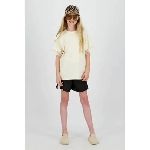 Fris, speels en makkelijk te combineren, dat is dit Raizzed meisjes T-shirt Tamie in lichtgeel. Het shirt heeft een rechte pasvorm met korte mouwen en een ronde hals, waardoor het comfortabel zit tijdens schooldagen, speelafspraken en weekenduitjes. De effen lichtgele kleur zorgt voor een rustige basis, terwijl het subtiele kantdetail het shirt net wat specialer maakt.Lichtgeel T-shirt met kantdetail Gemaakt van 100% katoen voor een zachte touch op de huid Korte mouwen en rechte mouwinzet voor veel bewegingsvrijheid Ronde hals die netjes aansluit zonder te knellen Effen lichtgele kleur, makkelijk te combineren met jeans, shorts of een rok Kantdetails voor een verfijnde, moderne look Zonder sluiting, gewoon aantrekken en klaar Onderdeel van de urban collectie, ideaal voor alledaagse outfits Wasbaar op 30 graden en lauw strijkbaar, geschikt voor het reguliere droogprogrammaElke dag draagbaarDit lichtgele T-shirt past goed bij een relaxte, dagelijkse stijl. Combineer het met een stoere jeans en sneakers voor school, of met een luchtige short op warme dagen. De rechte pasvorm en het zachte katoen maken het geschikt voor langere dagen.Raizzed voor moderne kidsRaizzed richt zich op kids die houden van een eigentijdse, stadse look. De ontwerpen sluiten aan bij de laatste trends, maar blijven praktisch en draagbaar. Met dit T-shirt haal je een betrouwbaar basisitem in huis dat prettig zit en er verzorgd uitziet.Een praktische toevoeging aan de kledingkast, klaar voor elke dag.