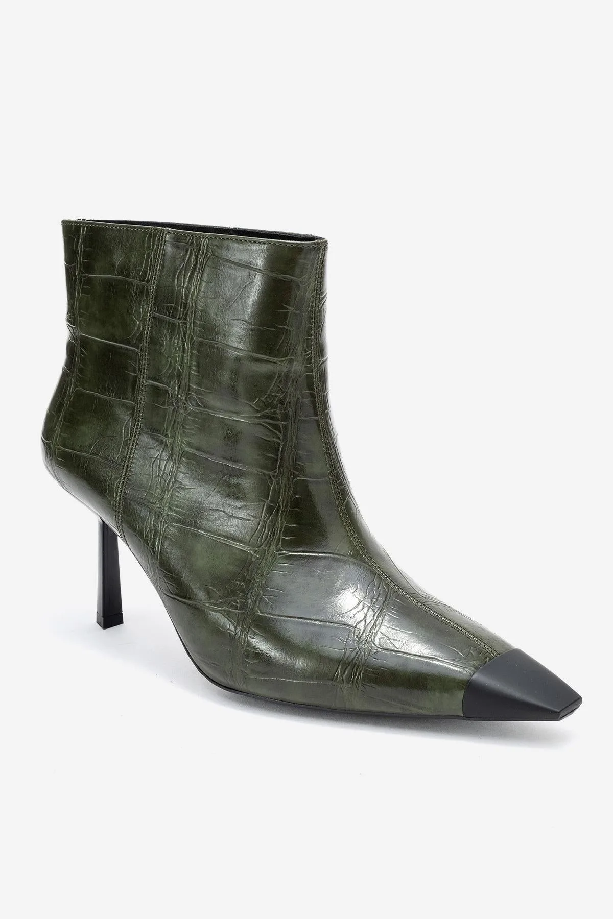 Een verfijnde stilettolaars die klassieke spitse elegantie combineert met een eigentijdse textuur