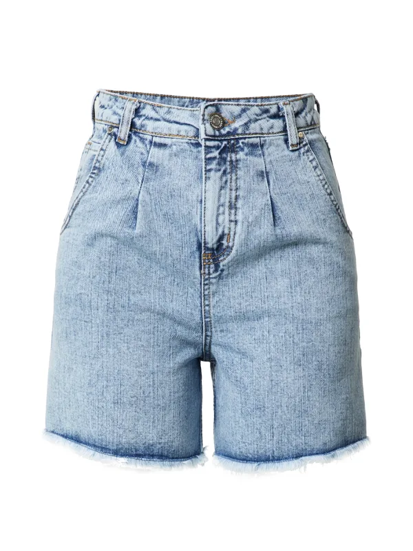 Design: Gefranjerde zoom, Ritssluiting, 5-pocket-style; Type sluiting: Ritssluiting; Materiaal: Denim; Motief: Effen; Details: Plooien; Extra's: Contrasterende naden, Label patch/label flag, Gewassen effect, Vaste grip, Riemlussen; Wassing: Acid washed; Lengte: Kort/mini; Pasvorm: Loosefit; Taillehoogte: High waist