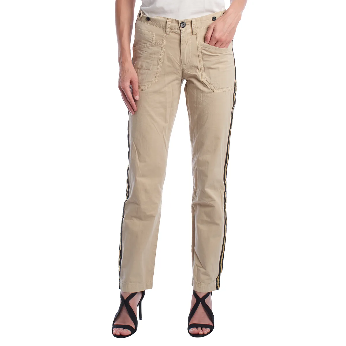 Broek van Zadig & Voltaire met zijstrepen en een recht model. Casual stijl met een sportieve touch.nn Deze broek van Zadig & Voltaire maakt indruk met zijn ontspannen, moderne ontwerp en is gemaakt van katoen met elastaan voor extra comfort. Hij valt op door de contrasterende sierbanden aan de zijkanten, die hem een sportief-chique look geven en perfect zijn om elke dag te dragen. De tailleband met riemlussen en elastiek achter zorgt voor een comfortabele en flatterende pasvorm.nn Perfect voor casual looks. Je kunt het combineren met eenvoudige T-shirts, oversized shirts of zelfs sandalen met hak om je outfit te verbeteren.nn Details:n Snit: recht, halfhoog.n Buitenkant: Katoenen stof met een zacht oppervlak.n Taille: Met riemlussen, elastische achterkant.n Zakken: Opgezette zakken voor en opgezette zakken achter.n Stijl: Casual met contrasterende zijbanden.n Sluiting: Rits en knoop aan de voorkant.nn Voeg een veelzijdig stuk dat comfort, stijl en karakter combineert toe aan uw garderobe met deze broek van Zadig & Voltaire.n Samenstelling: 100% katoenn Onderhoud:nMachinewasbaar op maximaal 30 °C met vergelijkbare kleuren.n Gebruik geen bleekmiddelen of witmakers.n Strijken op lage temperatuur indien nodig.n Niet in de droger drogen.