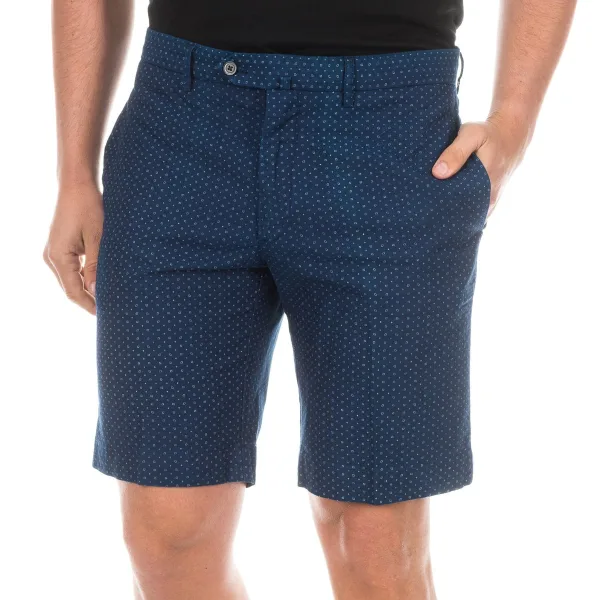 Texaanse bermuda. Knoop- en ritssluiting. Twee open zakken aan de zijkanten. Twee zakken met knoopsluiting op de achterkant. Tailleband met riemlus. Recht gesneden broekje. Naden in toon zichtbaar. Samenstelling: 100% katoen Onderhoud: Wassen op max. 30ºC. - Geen bleekmiddel gebruiken. - Strijken op lage temperatuur. - Ondersteunt chemisch reinigen. - Geen droger gebruiken.