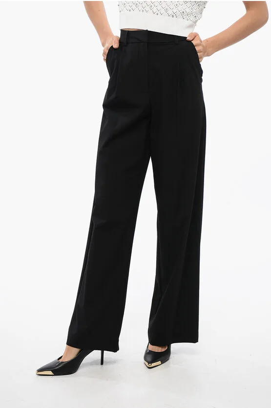 Rechte DRUMMOND-broek met plooien in zwart Prijzen