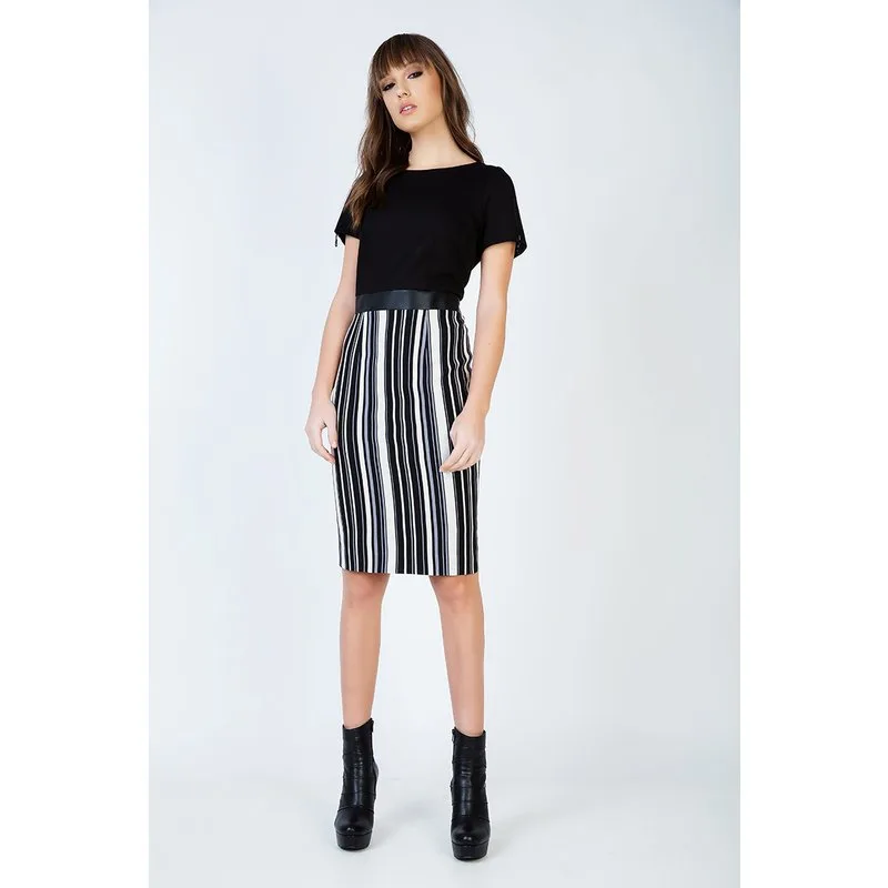 Rechte jurk met streepdetail, rits en plooidetail Prijzen