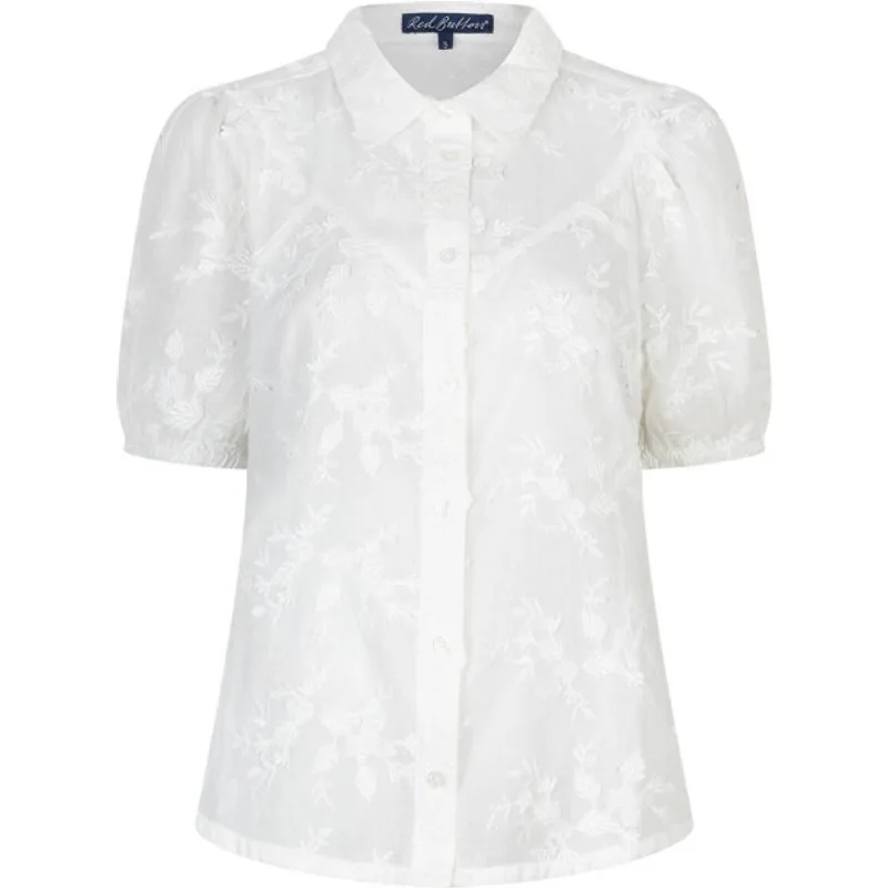 Red Button Blouse korte mouw SRB4826 VICTORIA in de kleur Wit