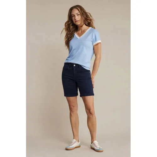 Ga voor een ontspannen zomerlook met deze Red Button denim short dames in donkerblauw. De 'Relax Short Jog Colour' heeft een comfortabele high waist en een rechte pijp, waardoor de short prettig aansluit zonder strak te voelen. De donkerblauwe denimkleur is rustig en tijdloos en past gemakkelijk bij de rest van je garderobe.Comfortabele denim met casual details Gemaakt van katoen met een klein percentage elastaan voor een soepele, licht stretchy feel High waist model dat prettig in de taille zit en de taille licht accentueert Straight fit pijp voor een relaxed silhouet dat niet knelt bij het been Klassieke 5-pocket styling met riemlussen en een rits- en knoopsluiting Effen donkerblauwe kleur, makkelijk te combineren met T-shirts, blouses en tops Praktisch in onderhoud, wasbaar op 30 graden en lauw strijkbaarIdeaal voor zonnige dagenDeze denim short is gemaakt voor zomerse dagen. Draag de broek met een luchtige top en sneakers voor een dagje stad, of met een eenvoudig T-shirt en sandalen voor een wandeling langs de boulevard. De comfortabele taillehoogte en rechte pijp maken de short geschikt voor dagelijks gebruik, of je nu onderweg bent of thuis ontspant.Red Button, focus op pasvormRed Button maakt broeken en shorts met aandacht voor pasvorm en een moderne look. Het merk combineert actuele kleuren en details met modellen die zijn ontworpen voor dagelijks draaggemak. Zo voeg je gemakkelijk een praktisch basisonderdeel toe aan je kledingkast.Een comfortabele denim short waar je de hele zomer plezier van hebt.
