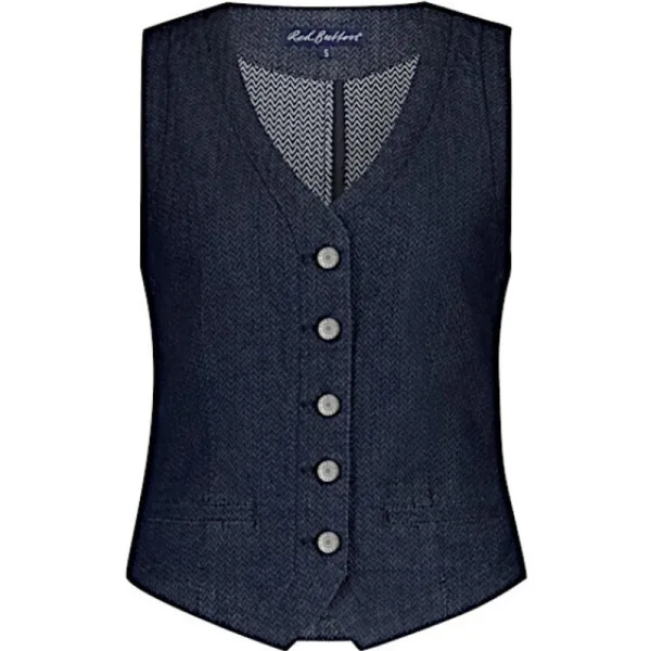 Red Button Gilet Waistcoat Denim Herringbone Srb4587 15 Dark Blue...