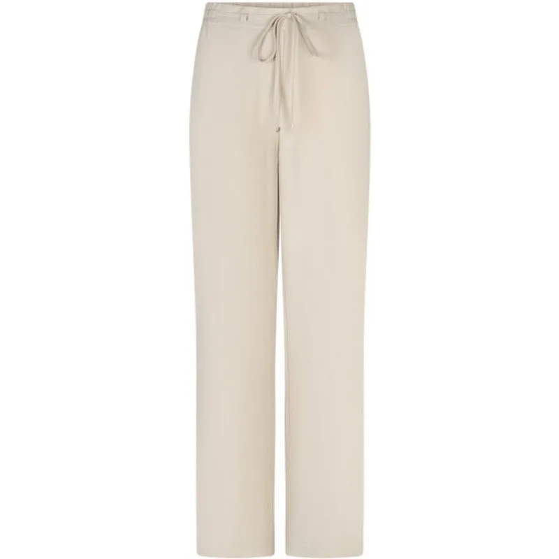 De Claudette Palazzo is een wide leg Palazzo broek met een drawstring in de taille. Deze broek is gemaakt van een los vallende soepele stof. De Claudette Palazzo heeft steekzakken en paspelzakken en een elastische tailleband aan de achterkant. Beschikbaar in lengtemaat 33. Materiaal: 79% polyester 17% viscose 4%elastaan. Fitting: high rise - loose fit - wide legs Code: SRB4762