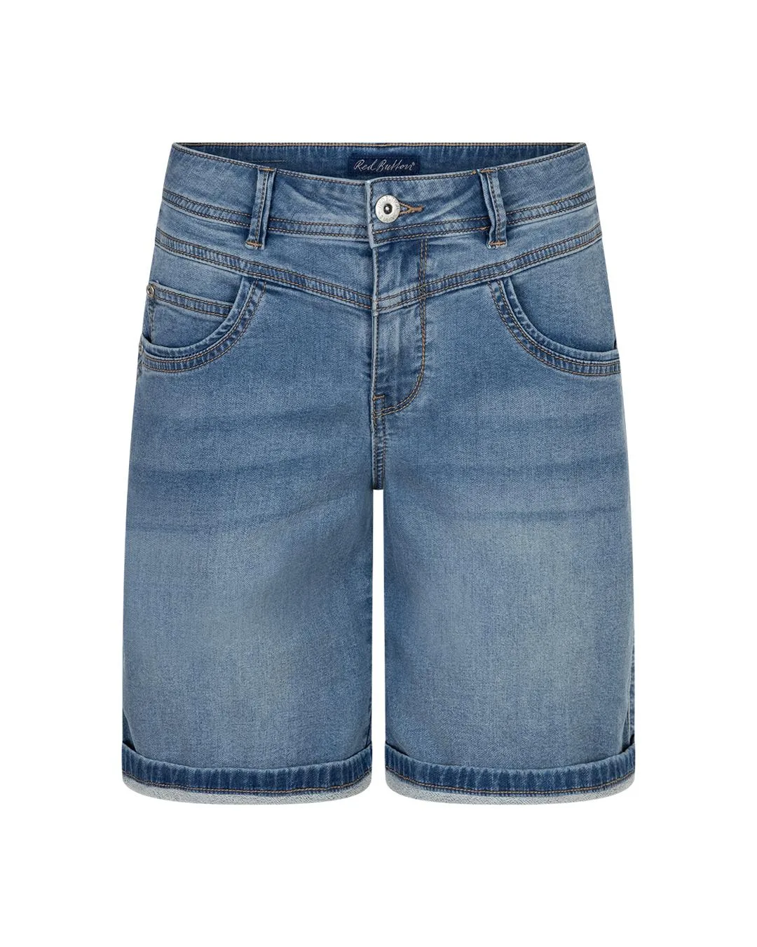 De Relax Short Jog Midstone van Red Button is de perfecte short voor een casual en comfortabele zomerse look. Dankzij de high rise taille sluit de short mooi aan in de taille en creëert hij een flatterend silhouet. De regular fit zorgt voor een ontspannen pasvorm die prettig draagt, de hele dag door. De midstone wassing geeft de short een frisse, tijdloze uitstraling die gemakkelijk te combineren is. De jogkwaliteit met stretch biedt extra comfort en optimale bewegingsvrijheid – ideaal voor warme dagen. Voorzien van een knoop- en ritssluiting, steekzakken aan de voorkant en achterzakken voor een zomerse denim look. Materiaal 82% katoen 11%polyester 5%viscose 2%elastaan Fitting: high rise - regular fit Code: SRB4932 Een comfortabele en veelzijdige essential voor je zomergarderobe.