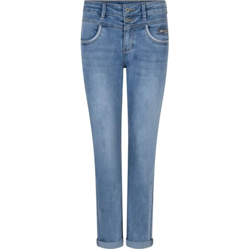 Jeans van Red Button met een middelhoge taille en tapered legs. De broek heeft een subtiel borduursel op de steekzakken en een dubbele knoopssluiting. Regular Fit. Materiaal: 71% katoen 27% recycled polyester 2% elastane. Fitting: regular rise - regular fit - tapered legs Code: SRB4889. Kleur: stone used.