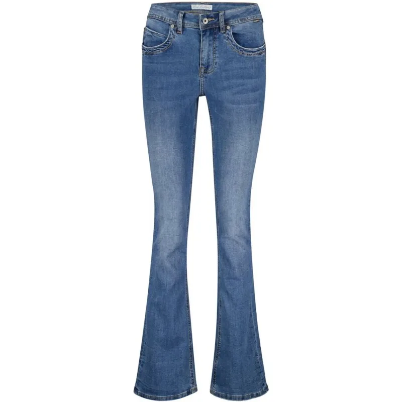 De Babette midstone used is een flare jeans met een blauwe wassing. De jeans heeft een aangesloten pasvorm op de bovenbeen en heup en is uitlopend vanuit de knie is de perfecte flare. De Babette midstone used is gemaakt van stretch denim voor ultiem comfort. Materiaal: 70% katoen 28% recycled polyester 2% elastane. Fitting: regular rise – regular fit – flare legs Code: SRB4008 SS26 Het is lengtemaat 31.