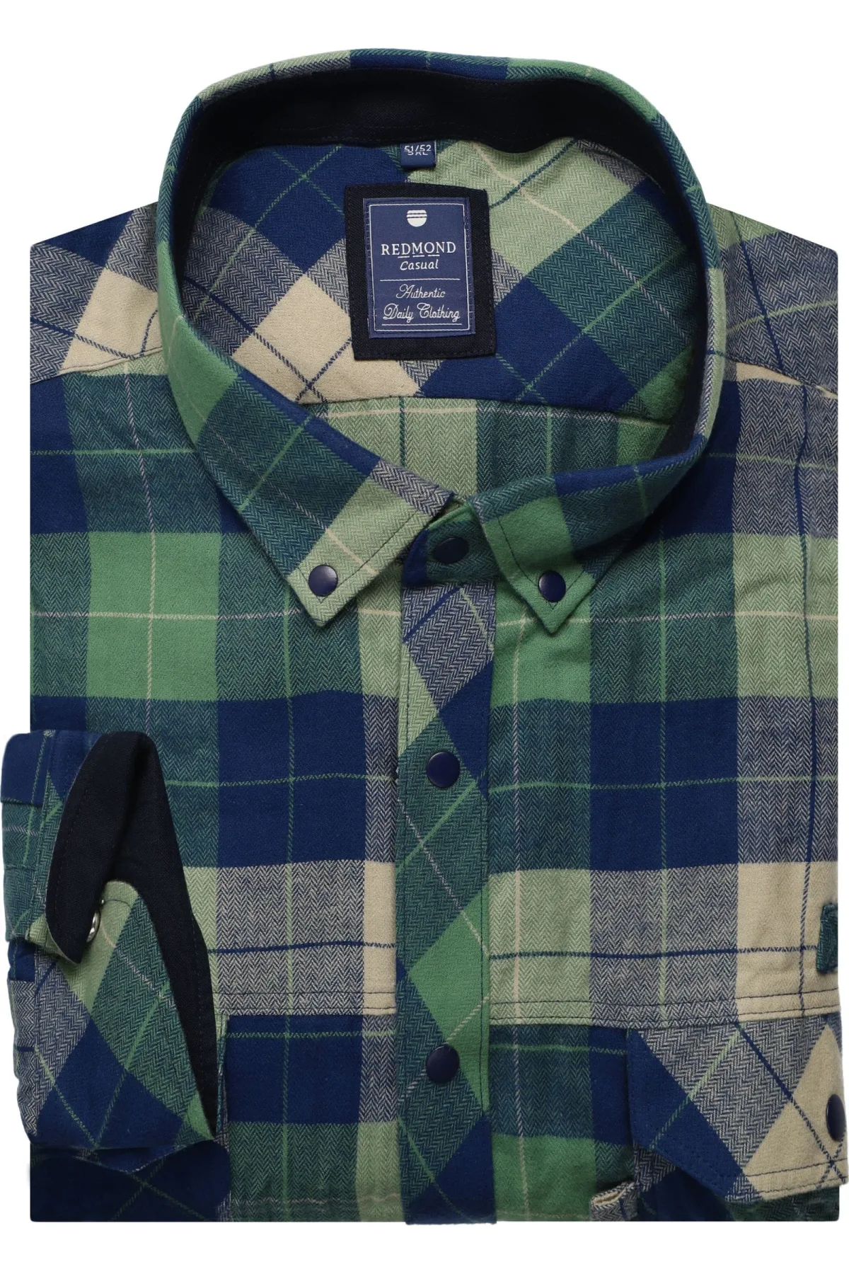 Redmond Casual Flanellen Overhemd groen, Ruit