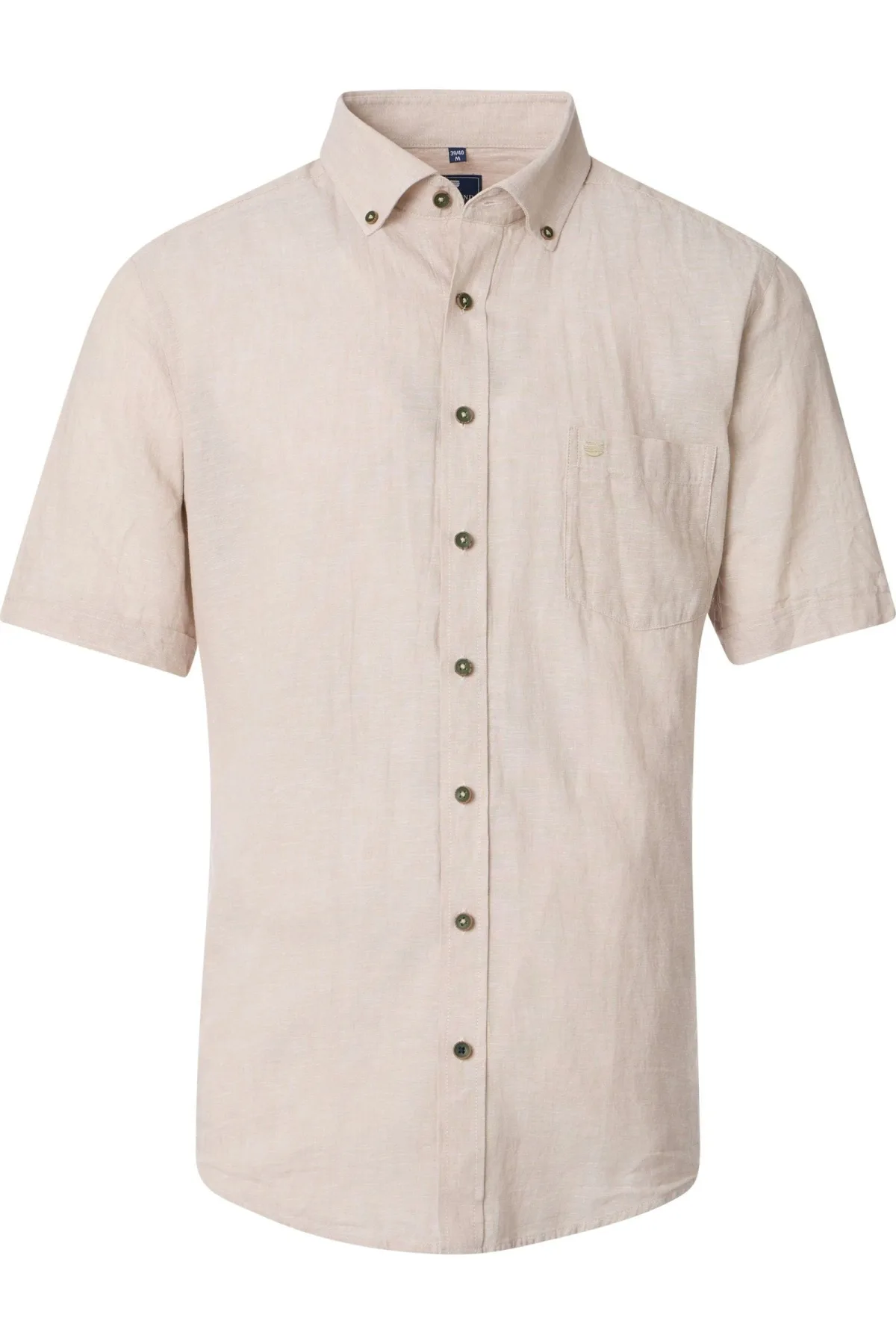 Korte mouw, 55% Linnen / 45% Katoen, Button-Down kraag Linnen, Met borstzak, 40 graden