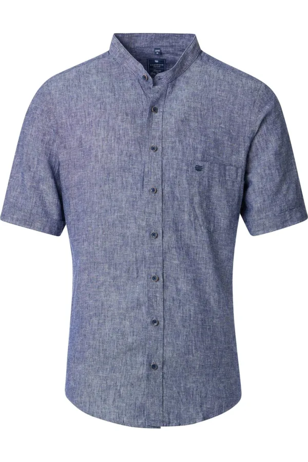 Korte mouw, 55% Linnen / 45% Katoen, Mao collar kraag Linnen, Met borstzak, 40 graden