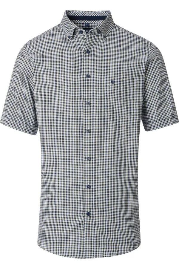 Korte mouw, 100% Katoen, Button-Down kraag Met borstzak, Decoratieve band in kraag, 40 graden