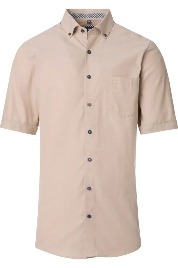 Redmond comfort fit overhemd korte mouw Oxford beige Strijkvriendelijk Boord