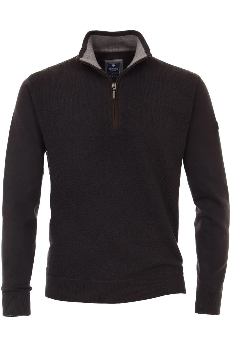 Redmond Casual Regular Fit Half-Zip Sweater bruin, Effen