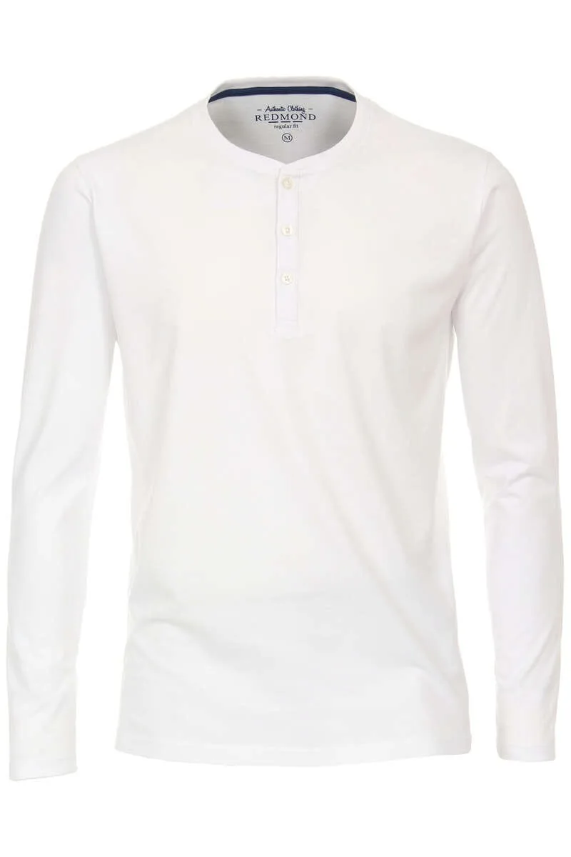 Redmond regular fit Tshirt lange mouw Ohals met knoopsluiting wit
