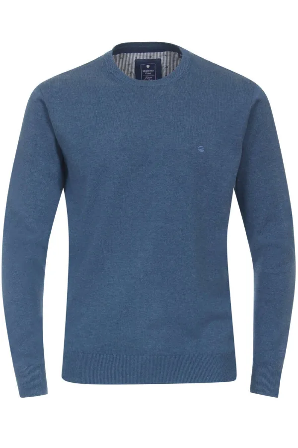 Redmond Casual Regular Fit Trui ronde hals middenblauw, Effen Prijzen