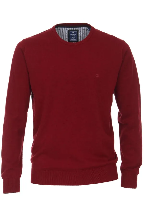 Redmond Casual Regular Fit Trui ronde hals wijnrood, Effen Prijzen