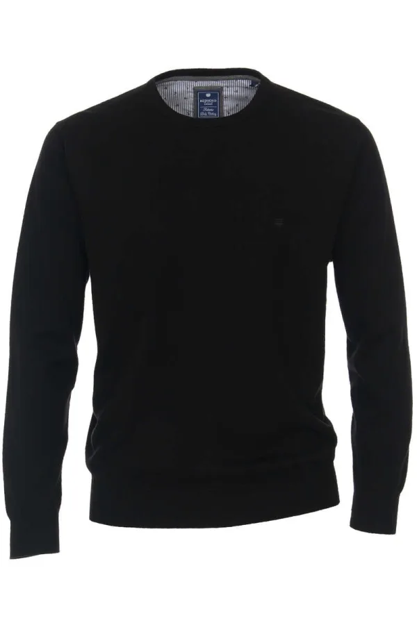 Redmond Casual Regular Fit Trui ronde hals zwart, Effen Prijzen