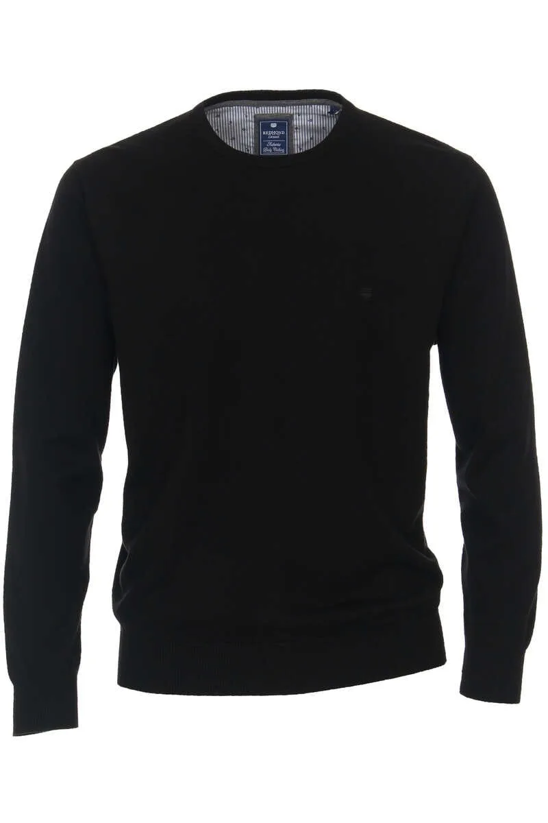 Redmond Casual Regular Fit Trui ronde hals zwart, Effen