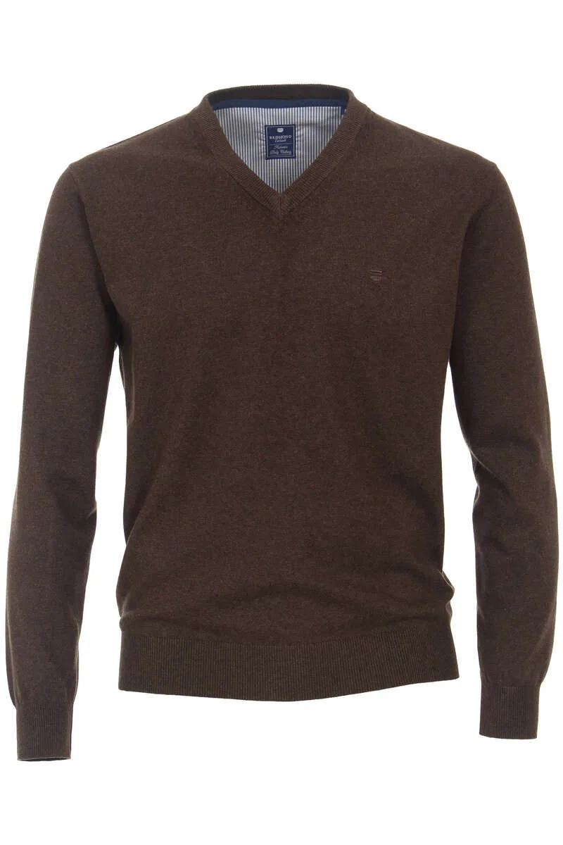 Redmond Casual Regular Fit Trui V-hals bruin, Effen Prijzen