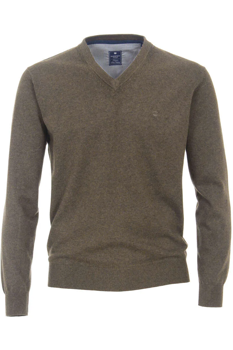 Redmond Casual Regular Fit Trui V-hals bruin, Effen Prijzen