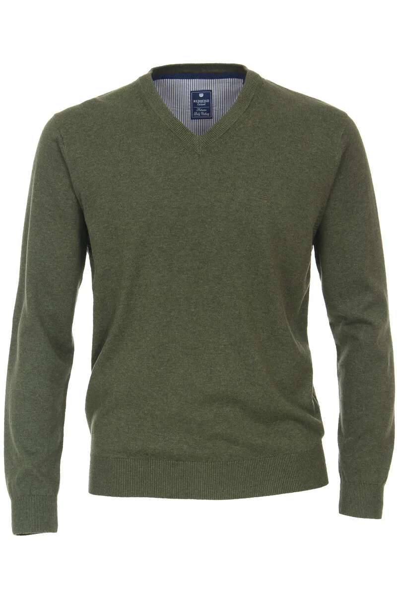 Redmond Casual Regular Fit Trui V-hals olijf, Melange