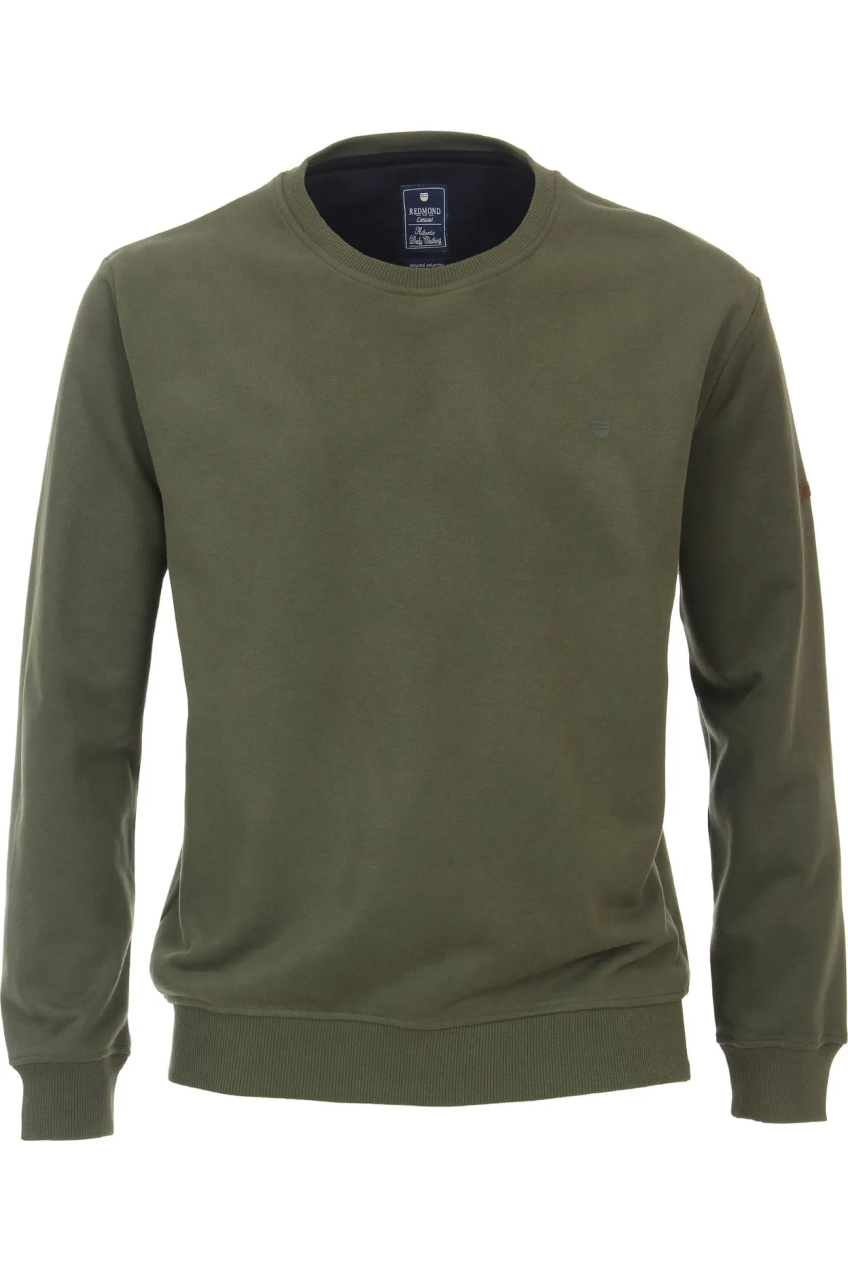 Redmond Casual Sweatshirt ronde hals groen, Effen