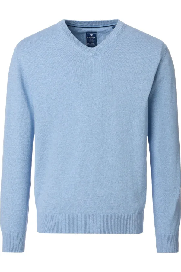 Redmond Casual Trui V-hals blauw, Effen