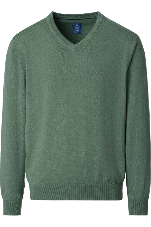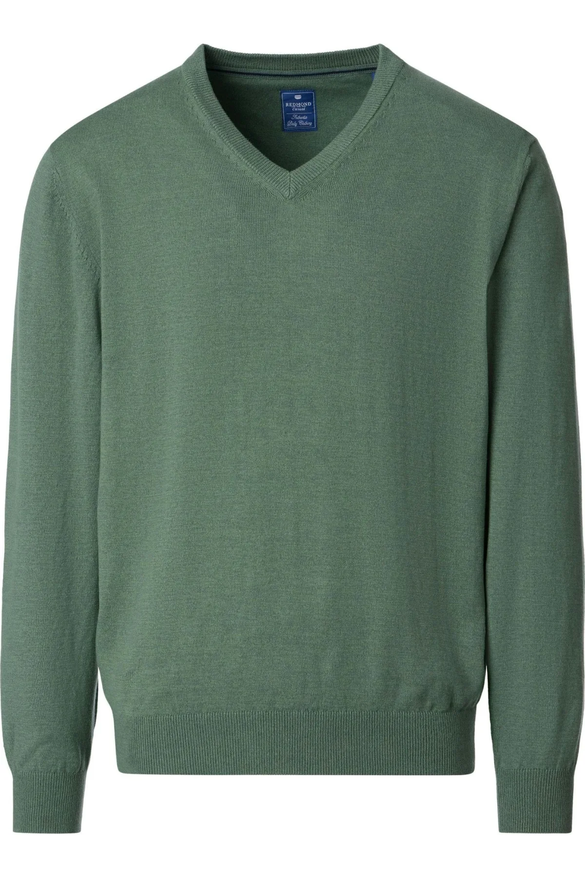 Redmond Casual Trui V-hals groen, Effen Prijzen