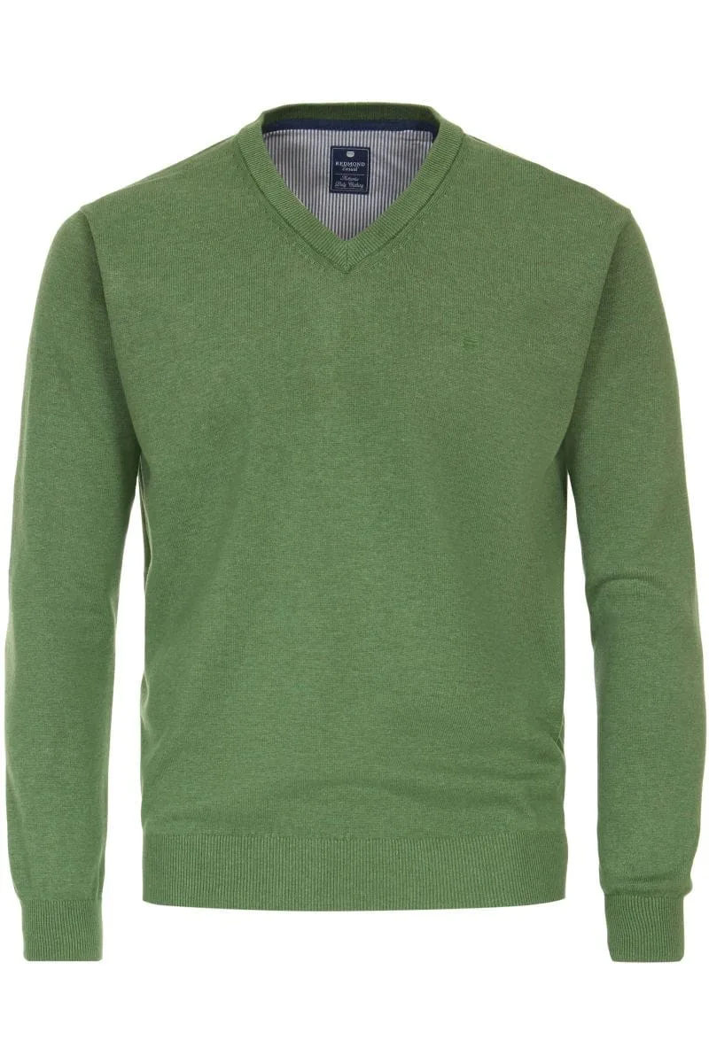 Redmond Casual Trui V-hals groen, Effen