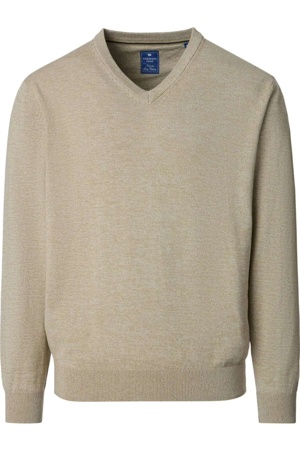 Redmond Casual Trui V-hals lichtbruin, Effen