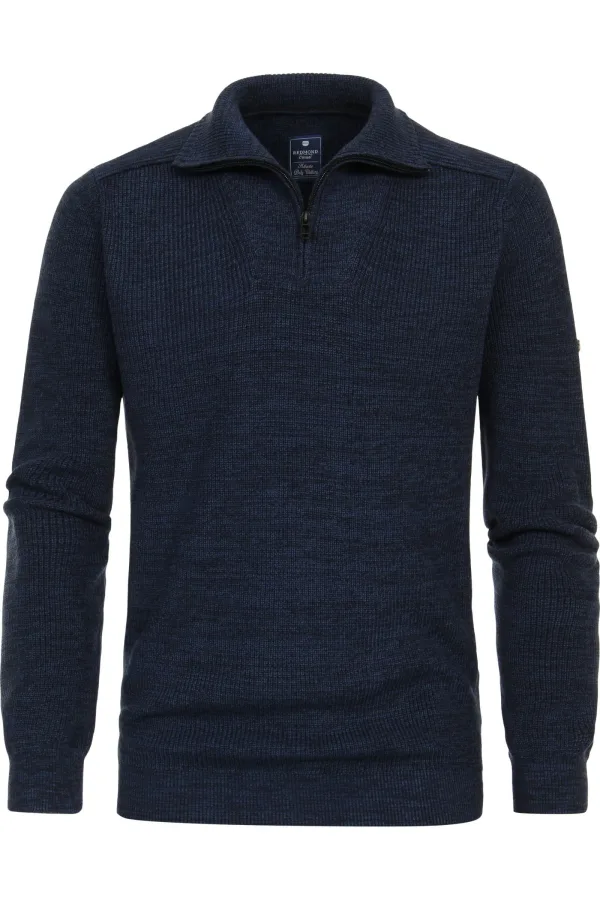 Redmond heren schipperstrui katoenmengsel opstaande kraag blauw middeldik