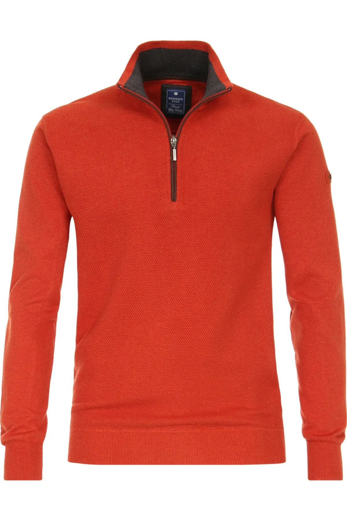 Redmond heren schipperstrui katoen opstaande kraag terracotta middeldik