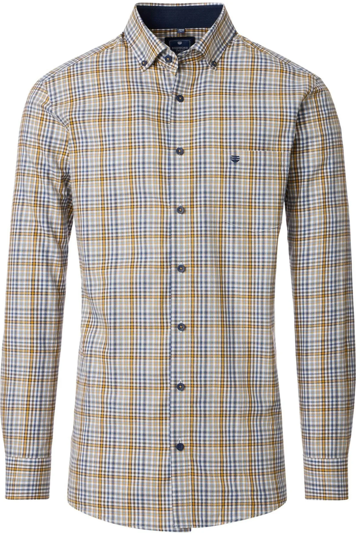Redmond comfort fit overhemd twill blauw grijs geel en wit...